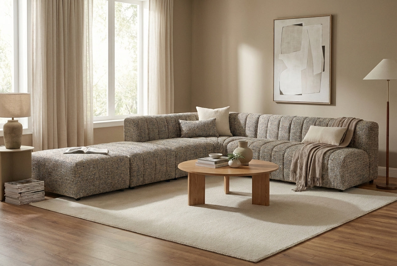 Homes seeking a neutral yet textured statement sofa