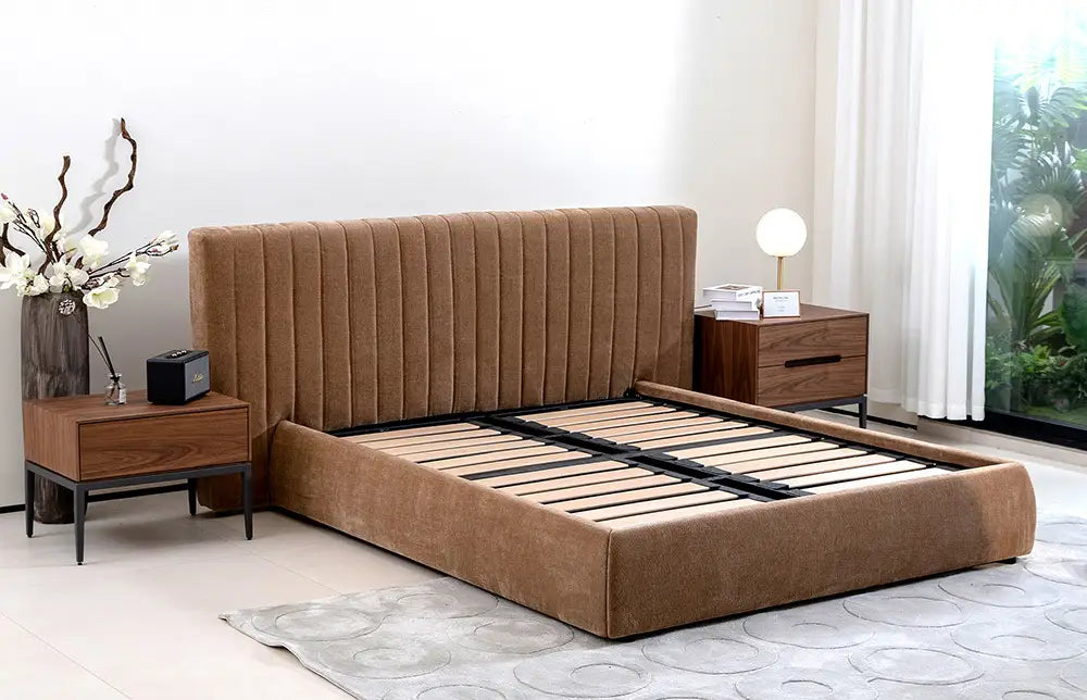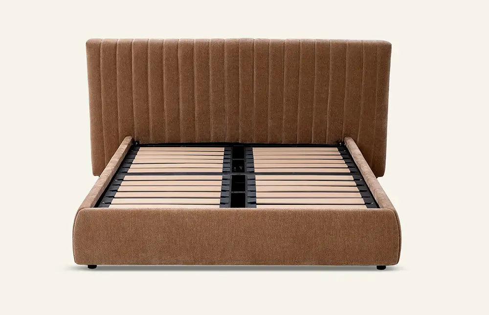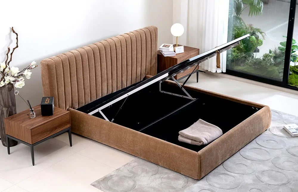 Elevate your bedroom with the Araco Bello King Storage Bed in Brown Chenille, where luxury meets functionality. This stunning bed combines a rich, soft chenille fabric with a spacious built-in storage solution, making it the perfect addition to any modern home. The warm, earthy brown hue of the chenille fabric brings a sense of cosiness and sophistication to your space, while the sleek, contemporary design adds a touch of elegance. Hidden storage compartments offer practical space to keep your essentials neatly tucked away, ensuring your bedroom remains clutter-free without compromising on style. With its generous king-size frame, this bed offers not only unparalleled comfort but also a smart, organized solution for the modern lifestyle.