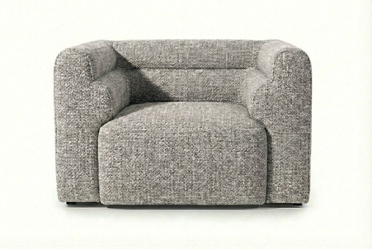 The Bear Armchair features a sculptural silhouette with gently curved lines and plush cushioning designed for relaxed everyday comfort. Its Ashlar upholstery offers a refined grey shade with subtle texture, providing a versatile base that complements contemporary, Scandinavian, and minimalist décor. The generously padded seat and supportive backrest create a comfortable space for reading, relaxing, or adding an extra seating element to your living room.