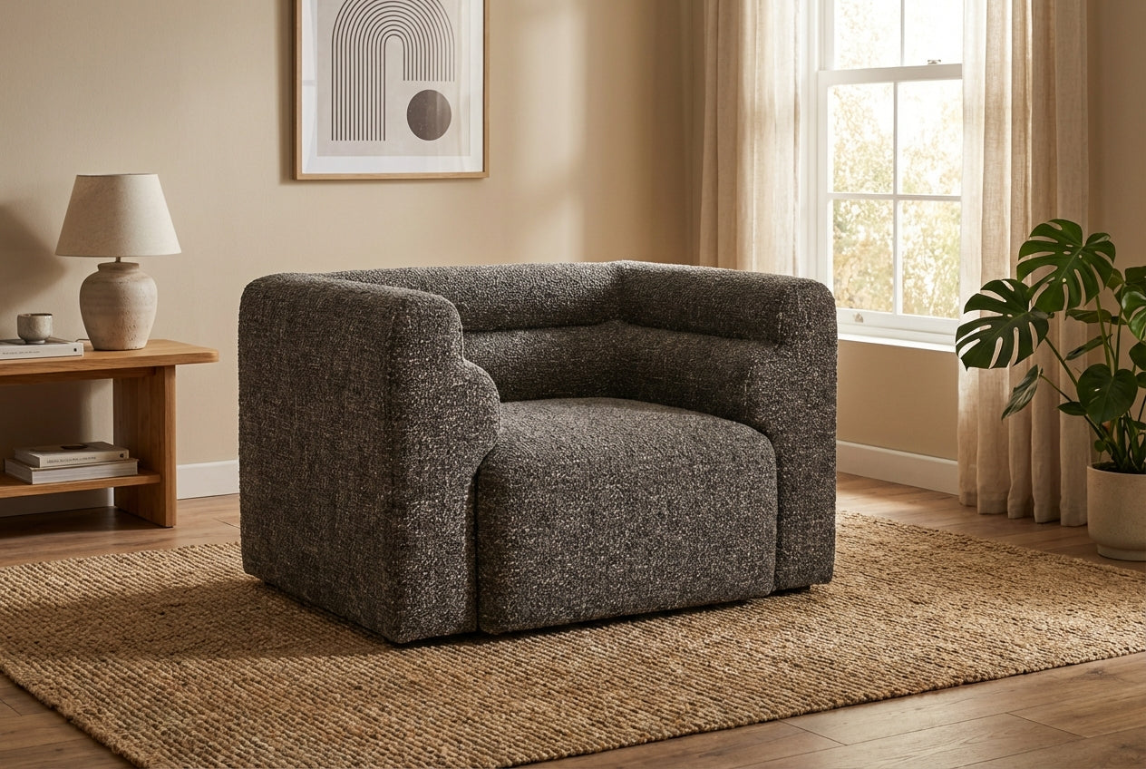 Elevate your living space with the Araco Atelier Bear Armchair Cinder, a sophisticated accent chair that blends contemporary design, plush comfort, and bold modern style. Upholstered in deep Cinder fabric, this armchair introduces a rich charcoal tone that adds depth and contrast to modern interiors while creating a cosy and inviting seating spot.