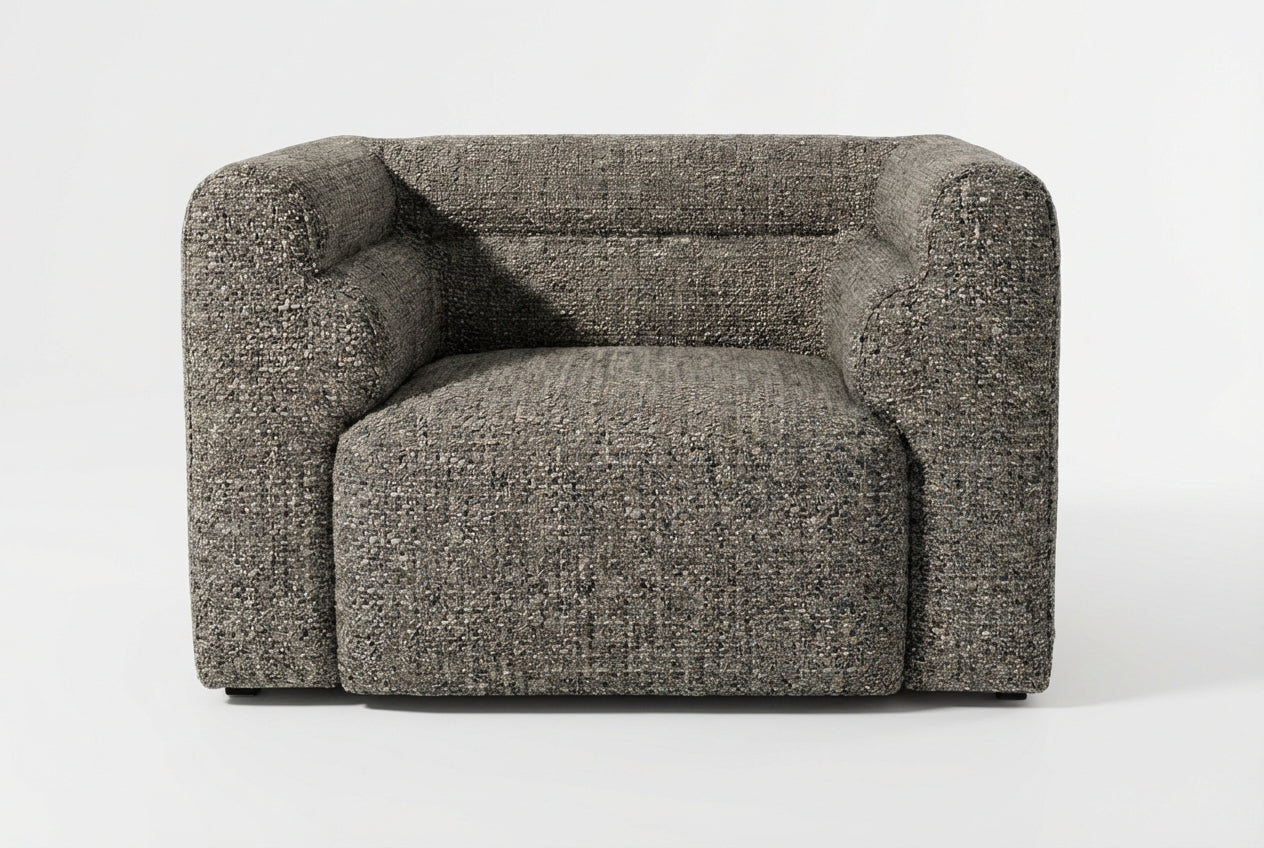 The Bear Armchair in Speckle is designed for homeowners who appreciate subtle texture and modern comfort. Its sculptural form, softly patterned upholstery, and supportive cushioning create a stylish accent chair that brings warmth, character, and relaxed elegance to contemporary living spaces.