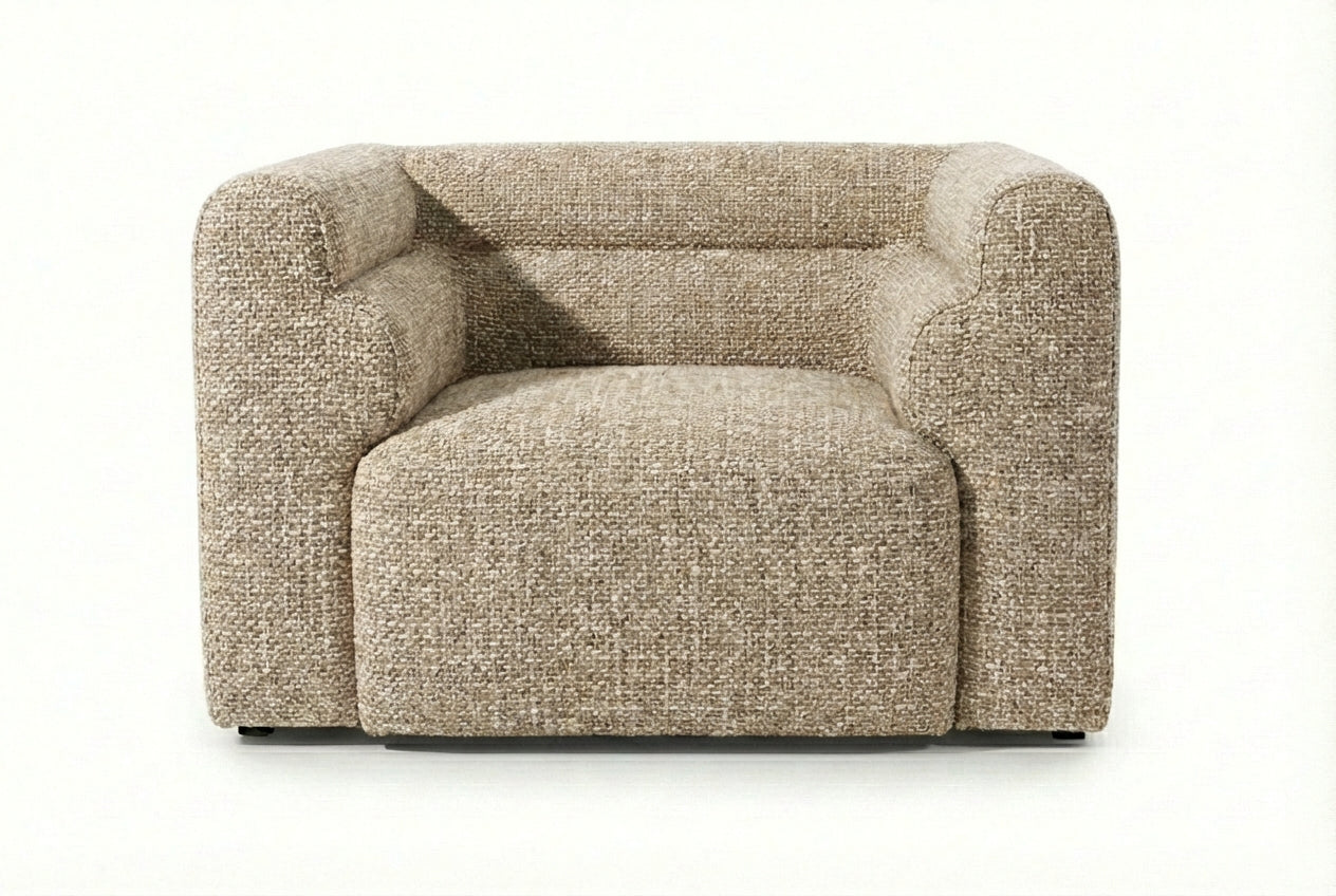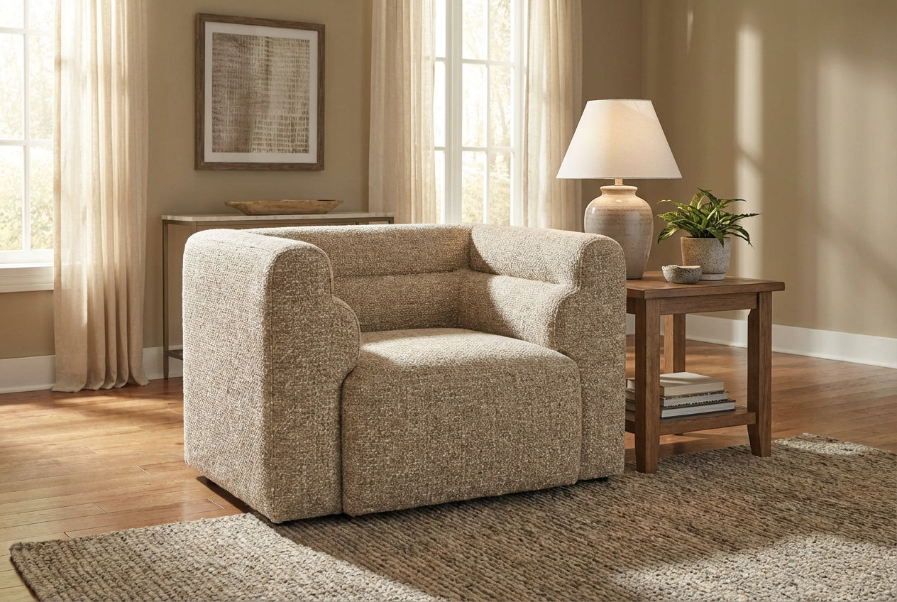 • Homes seeking warm neutral seating with subtle texture