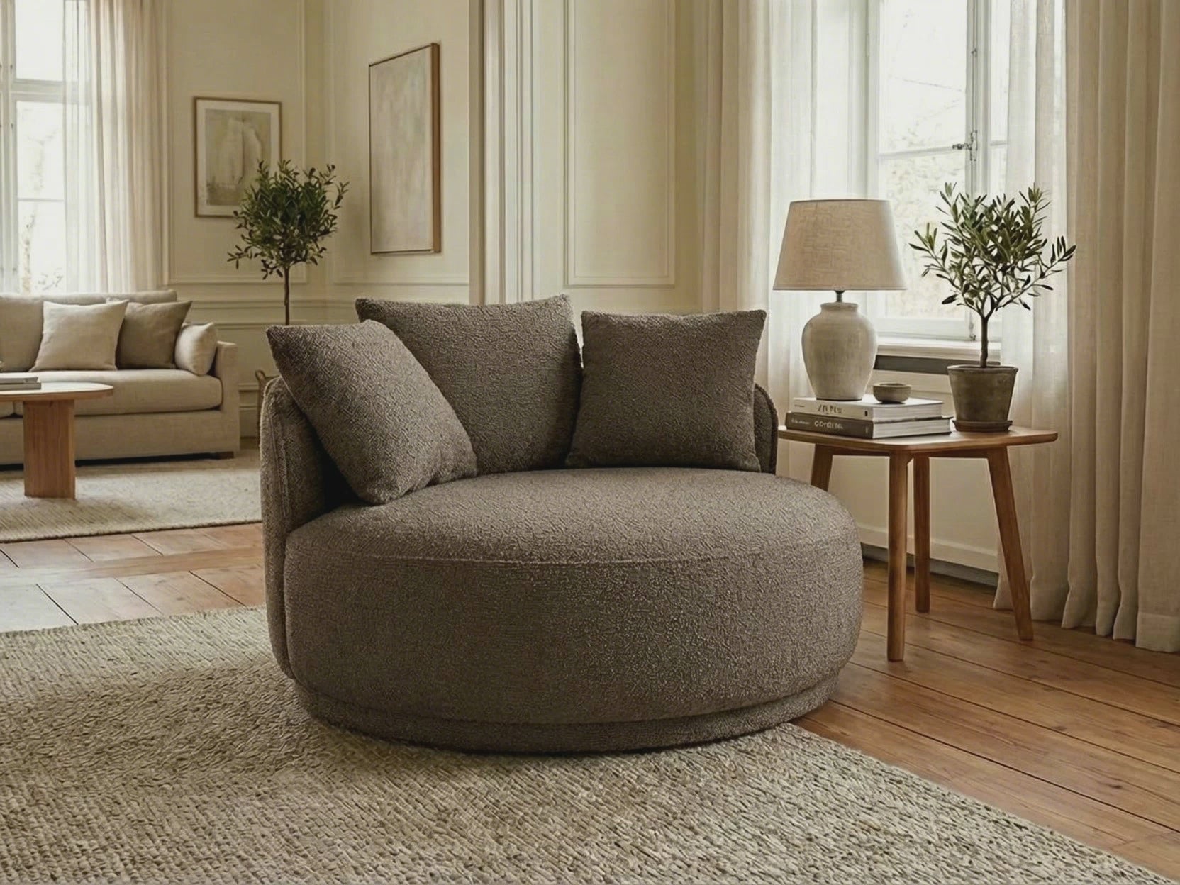 Add cushions or throws in cream, caramel, or olive green shades for layered warmth