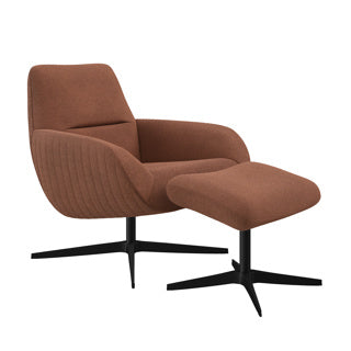 The FINLEY Armchair & Footrest in rose by Dome Deco adds a touch of modern romance to any interior. Wrapped in a soft rose-toned fabric, this set introduces subtle colour without overpowering the space. The armchair features a gently curved design with generous padding that invites you to sink in and unwind, while the matching footrest completes the sense of effortless relaxation.