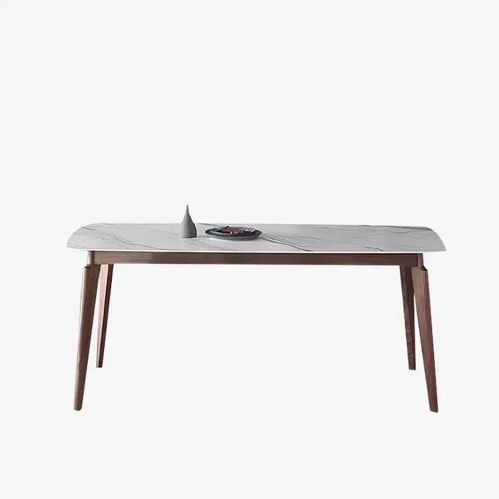 The Celeste Dining Table is supported by a sturdy walnut wood base, adding warmth and richness to the overall design. The deep brown tones of the walnut contrast beautifully with the lightness of the ceramic top, creating a harmonious balance of textures and colors. Its minimalist yet elegant design makes it an ideal choice for a variety of interior styles, from contemporary to mid-century modern.