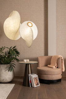 This smaller-scale pendant is ideal for focused lighting in cozy corners, above bedside tables, or in clusters over a kitchen counter or bar. The BIRO S casts a warm, directed glow while maintaining a soft, sculptural presence.
