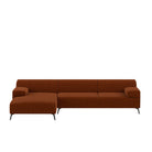 The Dôme Deco Lugano Corner L Sofa in Orange brings a vibrant twist to contemporary living with its bold color and refined silhouette. Upholstered in a rich, sunset-inspired orange fabric, this L-shaped sofa instantly enlivens any space while maintaining an air of sophistication and modern edge.