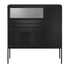 The Dome Deco ABERDEEN Bar Cabinet in black is the embodiment of understated luxury and modern sophistication. With its clean lines, rich black finish, and subtly textured surfaces, this cabinet brings a sleek, architectural presence to any interior. Designed to impress both in form and function, it serves as a refined focal point in your living or dining space.
