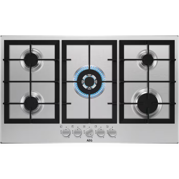 The AEG HGX95320SM 3000 Slim Line Gas Hob in silver offers professional-grade cooking with a spacious 90cm surface, accommodating multiple pots and pans simultaneously. Its sleek slim-line design combines modern aesthetics with durable, high-performance burners that provide precise and consistent flame control. Perfect for expert users seeking versatile, reliable cooking power within a stylish and spacious kitchen setup.