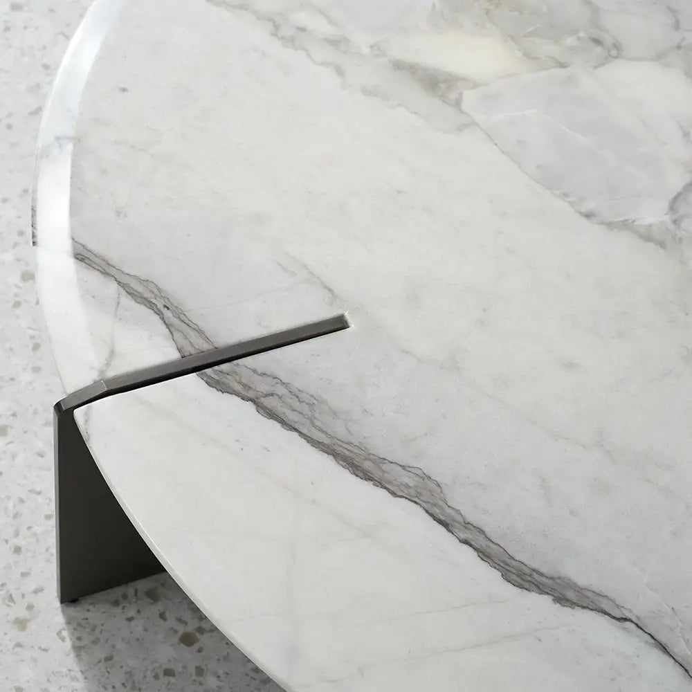 The Araco Stellar Coffee Table in Grey/White Marble and Stainless Steel offers a perfect blend of contemporary style and timeless elegance. The grey and white marble top features delicate veining, creating a sophisticated and unique pattern that adds a luxurious touch to your living space. The soft grey tones mixed with the crisp white highlights bring an air of refinement to any room, making it a versatile addition to various interior styles.