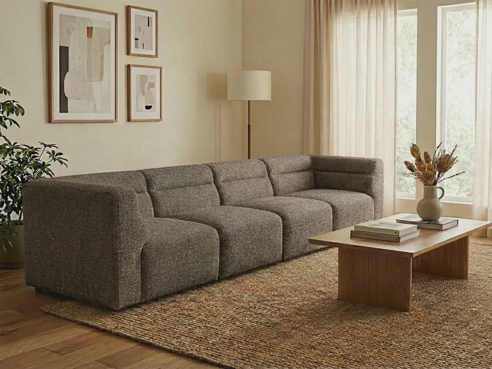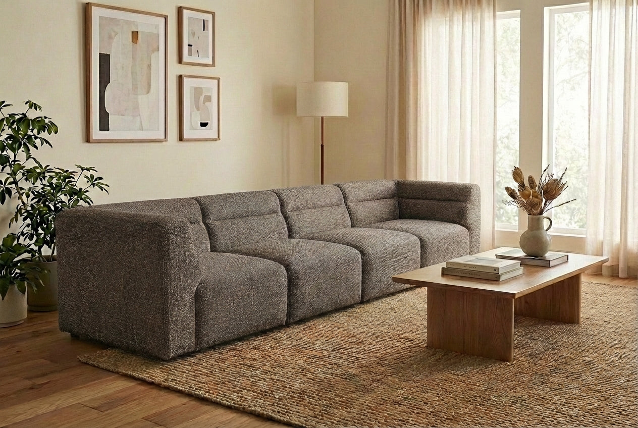 The Atlas 4-Seater Sofa in Pebbles is curated for homeowners, interior designers, and anyone seeking a stylish, functional centerpiece. Its sculptural form, relaxed comfort, and neutral Pebbles upholstery make it a versatile addition to a wide range of living spaces.