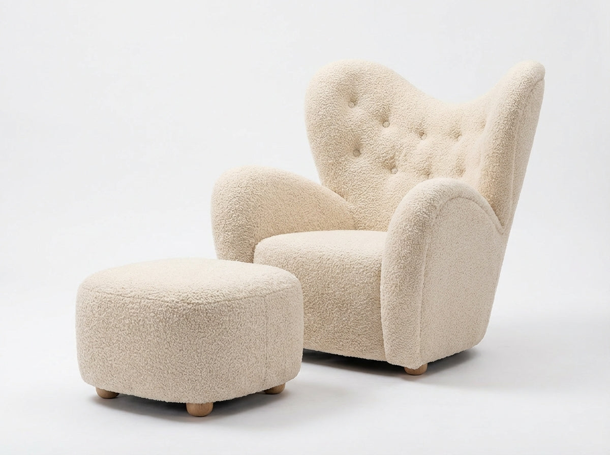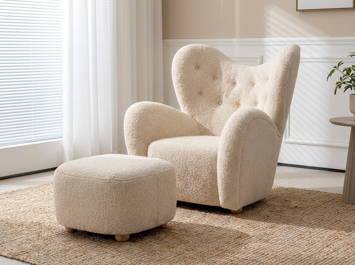 Araco Atelier Teddy Armchair Vanilla with Footstool