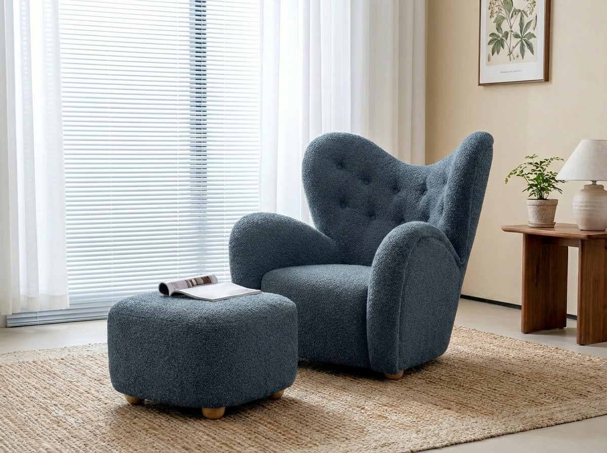 The Teddy Armchair with Footstool features a welcoming, softly rounded silhouette with generous cushioning that encourages you to sit back and unwind. Its Spindle upholstery offers a soft neutral shade with subtle texture, creating a calm and versatile aesthetic that complements contemporary, Scandinavian, and minimalist interiors. The matching footstool allows you to elevate your legs and enjoy a fully comfortable lounging experience.