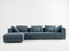 The ottoman provides flexibility—it can be used as a footrest, additional seat, or positioned to create a chaise-style lounging section.