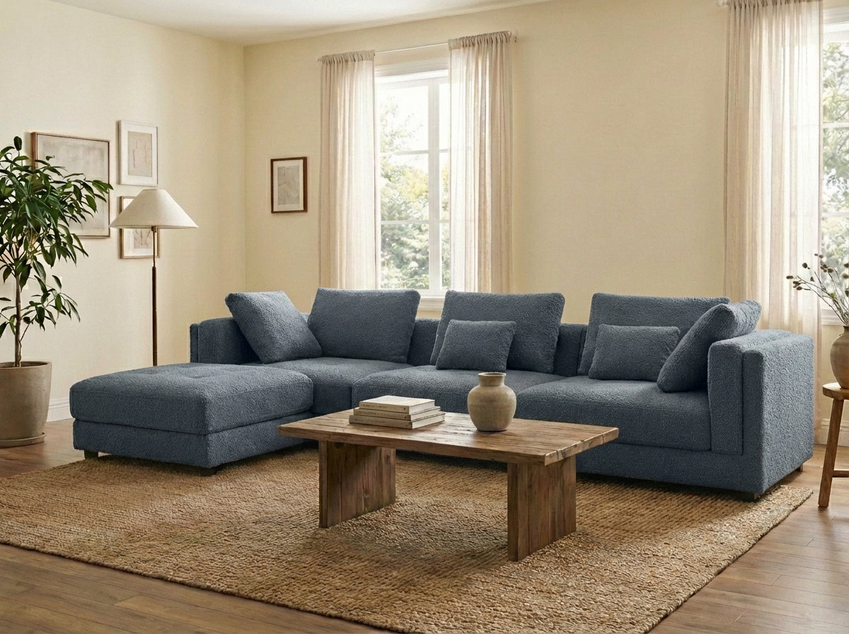 The Ollie 3-Seater Sofa with Ottoman in Spindle is designed for those who appreciate understated elegance and adaptable living spaces. Its soft neutral fabric, sculptural silhouette, and versatile ottoman create a stylish centrepiece that blends comfort, practicality, and modern design.